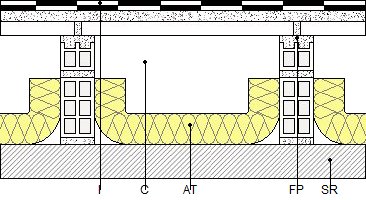 Replanteig dels punts singulars. Replanteig dels pendents i traçat de tremujals, aiguafons i juntes. Formació de pendents mitjançant vorada de tremujals, aiguafons i juntes amb mestres de maó. Replè de juntes amb poliestirè expandit. Execució dels envans alleugerits. Revisió de la superfície base en la que es realitza la fixació de l'aïllament d'acord amb les exigències de la tècnica a emprar. Tall, ajust i col·locació de l'aïllament. Execució del tauler ceràmic encadellat sobre els envans alleugerits. Abocat, estesa i reglejat de la capa de morter de regularització. Neteja i preparació de la superfície. Col·locació de la impermeabilització.