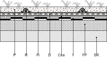 | Coberta plana transitable, no ventilada, enjardinada extensiva, amb reg integrat, sistema "ZINCO" | ||